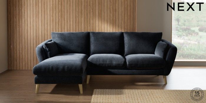 6.12.1 Buy Orlo Relaxed Sit Medium Sofa Chaise - Left Hand Boucle Chenille Dark Slate Blue Retro Tapered - Light from the Laura Ashley online shop Click here to use our website with more accessibility support, for example screen readers