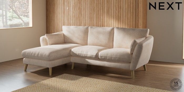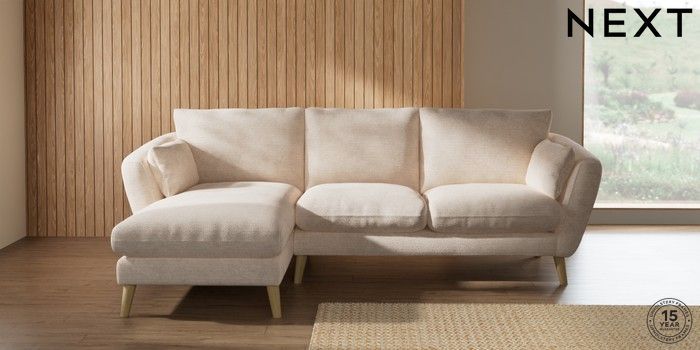 6.12.1 Buy Orlo Relaxed Sit Medium Sofa Chaise - Left Hand Boucle Chenille Oyster Retro Tapered - Light from the Laura Ashley online shop Click here to use our website with more accessibility support, for example screen readers