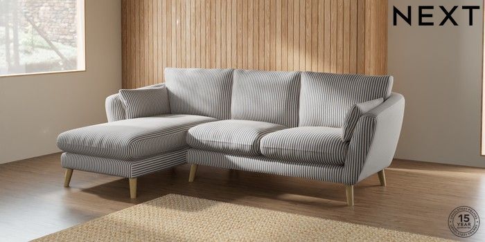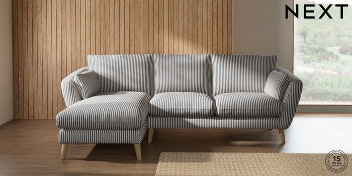 7.3.1 Buy Orlo Relaxed Sit Medium Sofa Chaise - Left Hand Chenille Stripe Slate Blue Retro Tapered - Light from the Laura Ashley online shop Click here to use our website with more accessibility support, for example screen readers