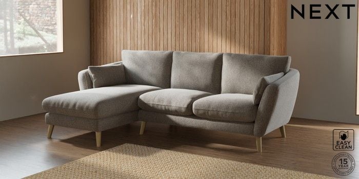 6.12.1 Buy Orlo Relaxed Sit Medium Sofa Chaise - Left Hand Chunky Boucle Easy Clean Dove Retro Tapered - Light from the Laura Ashley online shop Click here to use our website with more accessibility support, for example screen readers