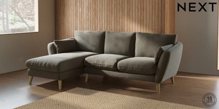 6.12.1 Buy Orlo Relaxed Sit Medium Sofa Chaise - Left Hand Chunky Marl Light Olive Green Retro Tapered - Light from the Laura Ashley online shop Click here to use our website with more accessibility support, for example screen readers