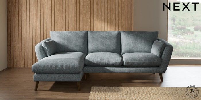 6.12.1 Buy Orlo Relaxed Sit Medium Sofa Chaise - Left Hand Chunky Weave Mid Blue Retro Tapered - Mid from the Laura Ashley online shop Click here to use our website with more accessibility support, for example screen readers