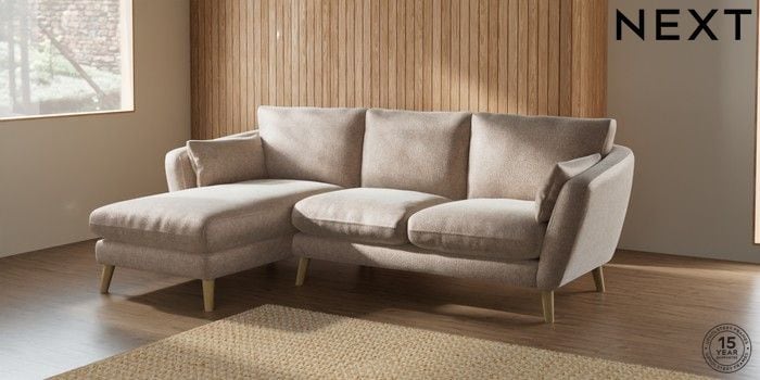 6.12.1 Buy Orlo Relaxed Sit Medium Sofa Chaise - Left Hand Cotswold Chenille Light Natural Retro Tapered - Light from the Laura Ashley online shop Click here to use our website with more accessibility support, for example screen readers