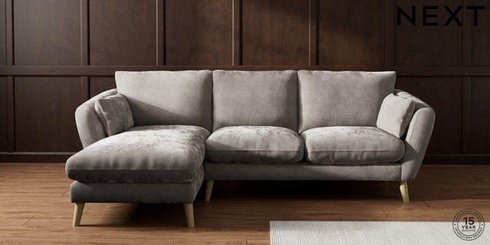 6.12.1 Buy Orlo Relaxed Sit Medium Sofa Chaise - Left Hand Distressed Velour French Grey Retro Tapered - Light from the Laura Ashley online shop Click here to use our website with more accessibility support, for example screen readers