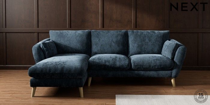 6.12.1 Buy Orlo Relaxed Sit Medium Sofa Chaise - Left Hand Distressed Velour Midnight Blue Retro Tapered - Light from the Laura Ashley online shop Click here to use our website with more accessibility support, for example screen readers