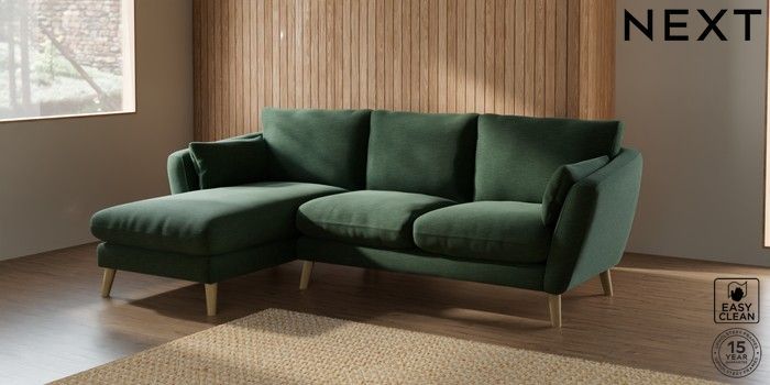 6.12.1 Buy Orlo Relaxed Sit Medium Sofa Chaise - Left Hand Fine Chenille Easy Clean Mid Khaki Green Retro Tapered - Light from the Laura Ashley online shop Click here to use our website with more accessibility support, for example screen readers