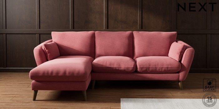 6.12.1 Buy Orlo Relaxed Sit Medium Sofa Chaise - Left Hand Fine Chenille Easy Clean Mid Pink Retro Tapered - Mid from the Laura Ashley online shop Click here to use our website with more accessibility support, for example screen readers