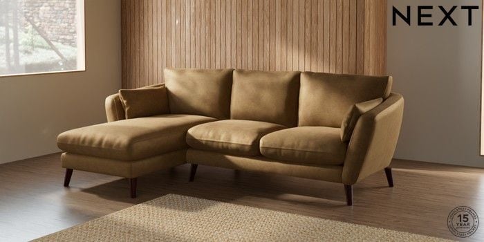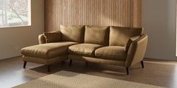 6.12.1 Buy Orlo Relaxed Sit Medium Sofa Chaise - Left Hand Luxe Chenille Honey Yellow Retro Tapered - Dark Brown from the Laura Ashley online shop Click here to use our website with more accessibility support, for example screen readers