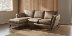 6.12.1 Buy Orlo Relaxed Sit Medium Sofa Chaise - Left Hand Luxe Chenille Mid Camel Beige Retro Tapered - Dark Brown from the Laura Ashley online shop Click here to use our website with more accessibility support, for example screen readers