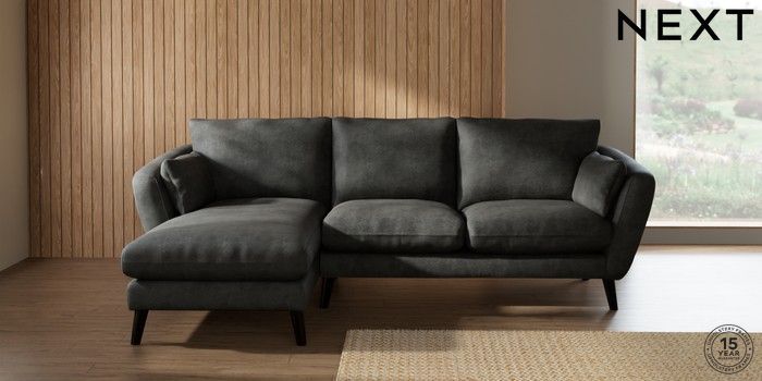 6.12.1 Buy Orlo Relaxed Sit Medium Sofa Chaise - Left Hand Monza Faux Leather Easy Clean Dark Grey Retro Tapered - Dark from the Laura Ashley online shop Click here to use our website with more accessibility support, for example screen readers