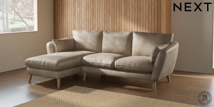 6.12.1 Buy Orlo Relaxed Sit Medium Sofa Chaise - Left Hand Plush Chenille Light Natural Retro Tapered - Light from the Laura Ashley online shop Click here to use our website with more accessibility support, for example screen readers