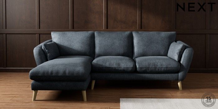 6.12.1 Buy Orlo Relaxed Sit Medium Sofa Chaise - Left Hand Plush Chenille Slate Blue Retro Tapered - Light from the Laura Ashley online shop Click here to use our website with more accessibility support, for example screen readers