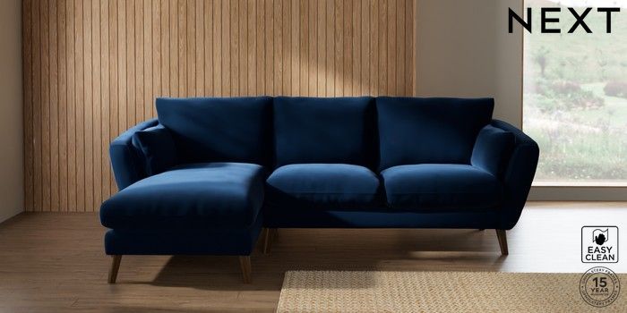 6.12.1 Buy Orlo Relaxed Sit Medium Sofa Chaise - Left Hand Plush Velvet Easy Clean Navy Blue Retro Tapered - Mid from the Laura Ashley online shop Click here to use our website with more accessibility support, for example screen readers