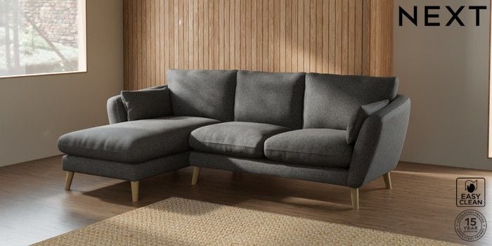 6.12.1 Buy Orlo Relaxed Sit Medium Sofa Chaise - Left Hand Tweedy Blend Easy Clean Dark Grey Retro Tapered - Light from the Laura Ashley online shop Click here to use our website with more accessibility support, for example screen readers