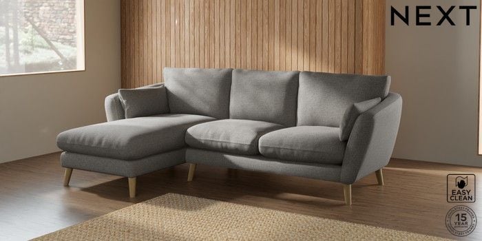 6.12.1 Buy Orlo Relaxed Sit Medium Sofa Chaise - Left Hand Woven Chenille Easy Clean Light Grey Retro Tapered - Light from the Laura Ashley online shop Click here to use our website with more accessibility support, for example screen readers