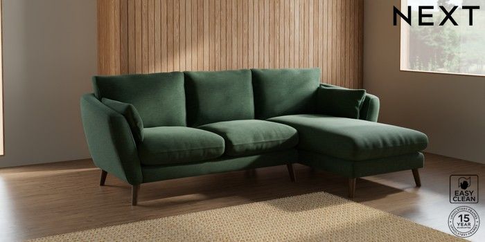 6.12.1 Buy Orlo Relaxed Sit Medium Sofa Chaise - Right Hand Fine Chenille Easy Clean Mid Khaki Green Retro Tapered - Mid from the Laura Ashley online shop Click here to use our website with more accessibility support, for example screen readers