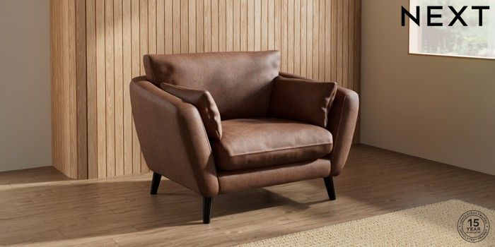 6.12.1 Buy Orlo Relaxed Sit Snuggle Monza Faux Leather Easy Clean Chestnut Brown Retro Tapered - Dark from the Laura Ashley online shop Click here to use our website with more accessibility support, for example screen readers