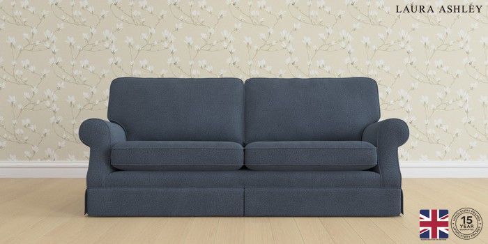 6.12.1 Buy Padstow by Laura Ashley 3 Seater Sofa Lundar Chenille Navy Blue Glide from the Laura Ashley online shop Click here to use our website with more accessibility support, for example screen readers