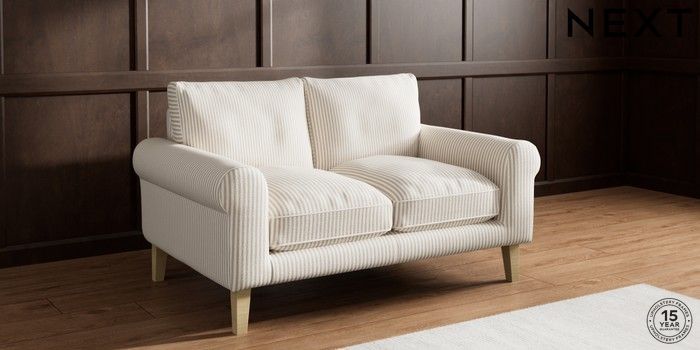 7.3.1 Buy Palermo Relaxed Sit 2 Seater Small Sofa Chenille Stripe Natural Tapered - Light from the Laura Ashley online shop Click here to use our website with more accessibility support, for example screen readers