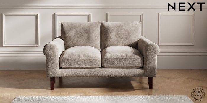 6.12.1 Buy Palermo Relaxed Sit 2 Seater Small Sofa Chunky Chenille Light Dove Tapered - Dark Brown from the Laura Ashley online shop Click here to use our website with more accessibility support, for example screen readers