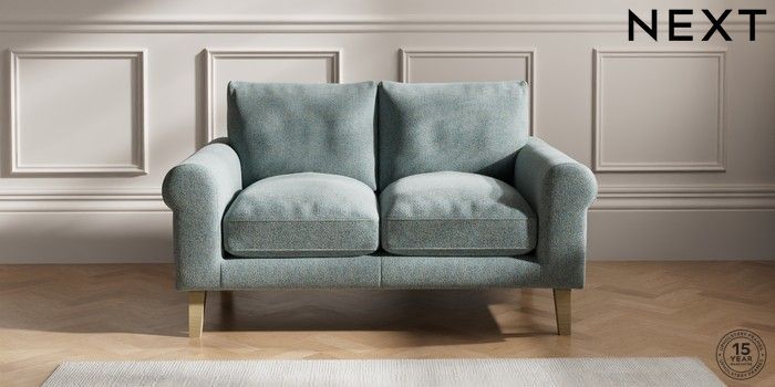 6.12.1 Buy Palermo Relaxed Sit 2 Seater Small Sofa Chunky Marl Mid Blue Tapered - Light from the Laura Ashley online shop Click here to use our website with more accessibility support, for example screen readers