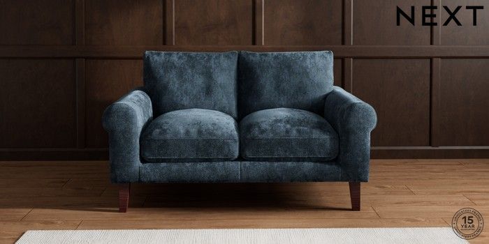 6.12.1 Buy Palermo Relaxed Sit 2 Seater Small Sofa Distressed Velour Midnight Blue Tapered - Dark Brown from the Laura Ashley online shop Click here to use our website with more accessibility support, for example screen readers