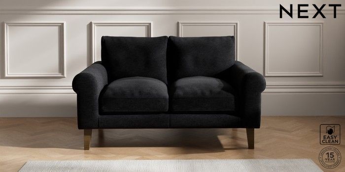 6.12.1 Buy Palermo Relaxed Sit 2 Seater Small Sofa Fine Chenille Easy Clean Black Tapered - Mid from the Laura Ashley online shop Click here to use our website with more accessibility support, for example screen readers