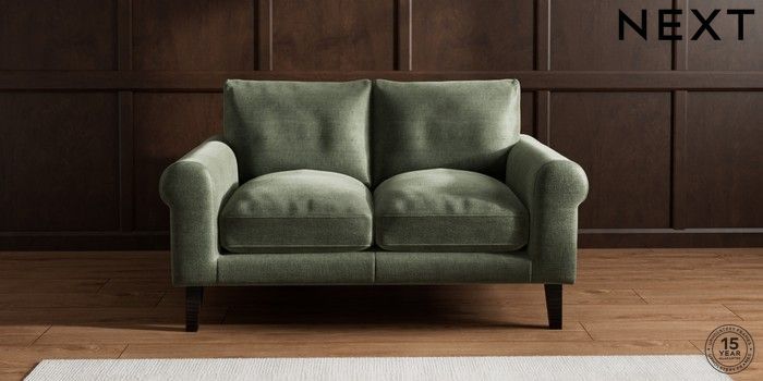 6.12.1 Buy Palermo Relaxed Sit 2 Seater Small Sofa Luxe Chenille Mid Green Tapered - Dark from the Laura Ashley online shop Click here to use our website with more accessibility support, for example screen readers