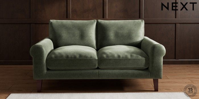 6.12.1 Buy Palermo Relaxed Sit 2 Seater Sofa Luxe Chenille Mid Green Tapered - Dark Brown from the Laura Ashley online shop Click here to use our website with more accessibility support, for example screen readers