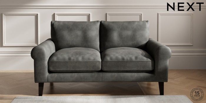 6.12.1 Buy Palermo Relaxed Sit 2 Seater Sofa Monza Faux Leather Easy Clean Dark Grey Tapered - Dark from the Laura Ashley online shop Click here to use our website with more accessibility support, for example screen readers