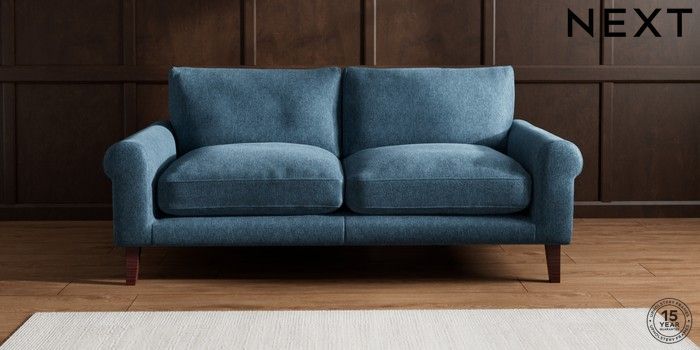 6.12.1 Buy Palermo Relaxed Sit 3 Seater Sofa Cotswold Chenille Dark Blue Tapered - Dark Brown from the Laura Ashley online shop Click here to use our website with more accessibility support, for example screen readers