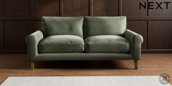 6.12.1 Buy Palermo Relaxed Sit 3 Seater Sofa Luxe Chenille Mid Green Tapered - Mid from the Laura Ashley online shop Click here to use our website with more accessibility support, for example screen readers