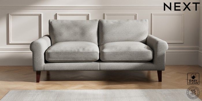 6.12.1 Buy Palermo Relaxed Sit 3 Seater Sofa Woven Chenille Easy Clean Light Grey Tapered - Dark Brown from the Laura Ashley online shop Click here to use our website with more accessibility support, for example screen readers