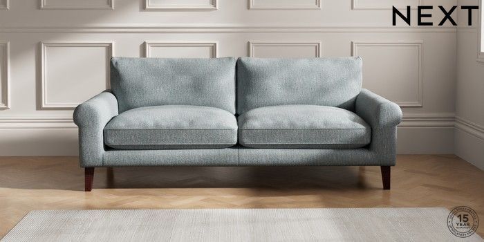 6.12.1 Buy Palermo Relaxed Sit 4 Seater Sofa Chunky Weave Mid Blue Tapered - Dark Brown from the Laura Ashley online shop Click here to use our website with more accessibility support, for example screen readers