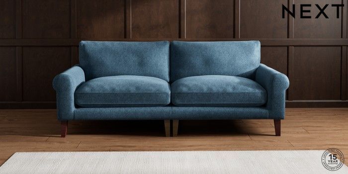 6.12.1 Buy Palermo Relaxed Sit 4 Seater Sofa Cotswold Chenille Dark Blue Tapered - Dark Brown from the Laura Ashley online shop Click here to use our website with more accessibility support, for example screen readers