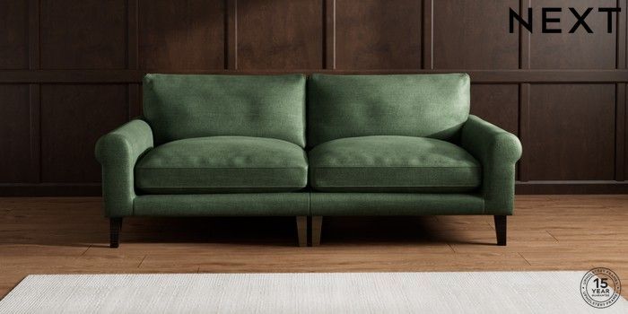 6.12.1 Buy Palermo Relaxed Sit 4 Seater Sofa Luxe Chenille Dark Green Tapered - Dark from the Laura Ashley online shop Click here to use our website with more accessibility support, for example screen readers