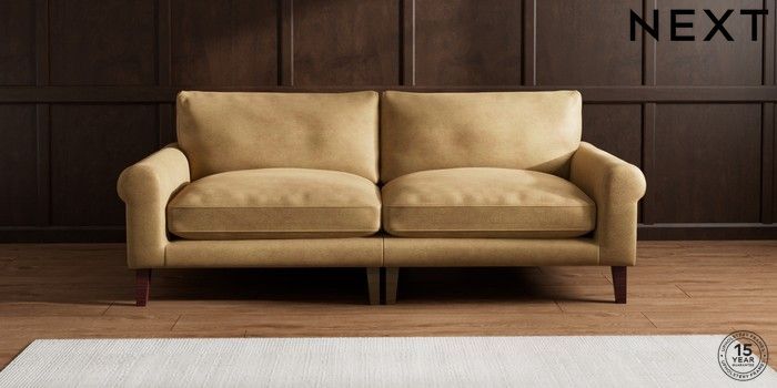 6.12.1 Buy Palermo Relaxed Sit 4 Seater Sofa Luxe Chenille Honey Yellow Tapered - Dark Brown from the Laura Ashley online shop Click here to use our website with more accessibility support, for example screen readers