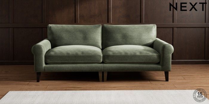 6.12.1 Buy Palermo Relaxed Sit 4 Seater Sofa Luxe Chenille Mid Green Tapered - Dark from the Laura Ashley online shop Click here to use our website with more accessibility support, for example screen readers