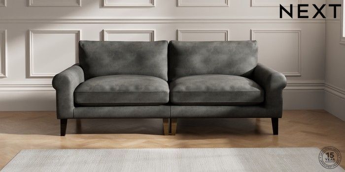 6.12.1 Buy Palermo Relaxed Sit 4 Seater Sofa Monza Faux Leather Easy Clean Dark Grey Tapered - Dark from the Laura Ashley online shop Click here to use our website with more accessibility support, for example screen readers