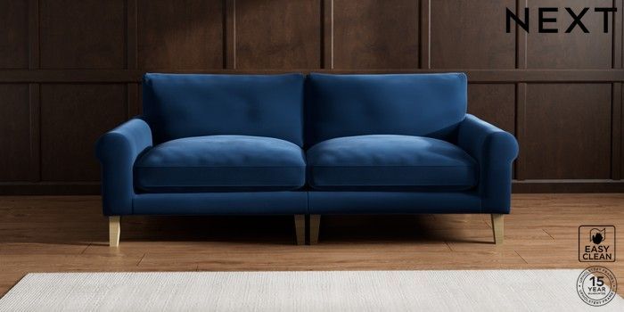 6.12.1 Buy Palermo Relaxed Sit 4 Seater Sofa Plush Velvet Easy Clean Navy Blue Tapered - Light from the Laura Ashley online shop Click here to use our website with more accessibility support, for example screen readers