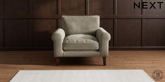 6.12.1 Buy Palermo Relaxed Sit Armchair Chunky Marl Light Olive Green Tapered - Dark Brown from the Laura Ashley online shop Click here to use our website with more accessibility support, for example screen readers