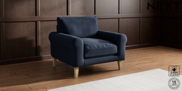 7.0.3 Buy Palermo Relaxed Sit Armchair Fine Chenille Easy Clean Dark Navy Blue Tapered - Light from the Laura Ashley online shop Click here to use our website with more accessibility support, for example screen readers