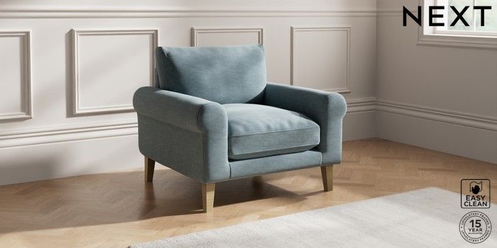 7.0.3 Buy Palermo Relaxed Sit Armchair Fine Chenille Easy Clean Mid Blue Tapered - Light from the Laura Ashley online shop Click here to use our website with more accessibility support, for example screen readers
