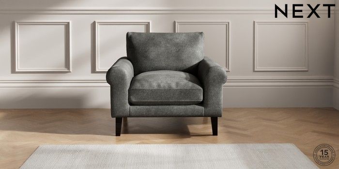 6.12.1 Buy Palermo Relaxed Sit Armchair Plush Chenille Dark Grey Tapered - Dark from the Laura Ashley online shop Click here to use our website with more accessibility support, for example screen readers