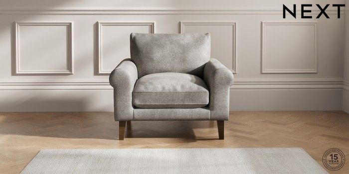 6.12.1 Buy Palermo Relaxed Sit Armchair Plush Chenille Light Grey Tapered - Mid from the Laura Ashley online shop Click here to use our website with more accessibility support, for example screen readers