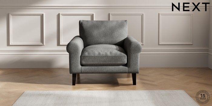 6.12.1 Buy Palermo Relaxed Sit Armchair Tweedy Chenille Dark Grey Tapered - Dark from the Laura Ashley online shop Click here to use our website with more accessibility support, for example screen readers