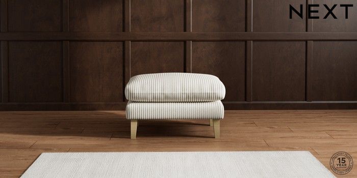 7.3.1 Buy Palermo Relaxed Sit Footstool Chenille Stripe Moss Green Tapered - Light from the Laura Ashley online shop Click here to use our website with more accessibility support, for example screen readers