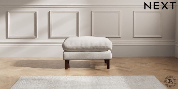 6.12.1 Buy Palermo Relaxed Sit Footstool Chunky Chenille Oyster Tapered - Dark Brown from the Laura Ashley online shop Click here to use our website with more accessibility support, for example screen readers