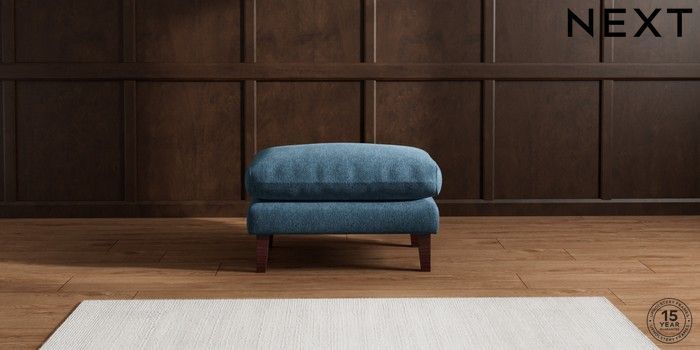 6.12.1 Buy Palermo Relaxed Sit Footstool Cotswold Chenille Dark Blue Tapered - Dark Brown from the Laura Ashley online shop Click here to use our website with more accessibility support, for example screen readers