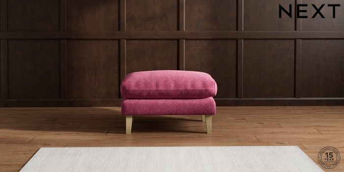 6.12.1 Buy Palermo Relaxed Sit Footstool Cotswold Chenille Dark Raspberry Pink Tapered - Light from the Laura Ashley online shop Click here to use our website with more accessibility support, for example screen readers